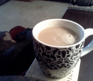 Sunday rang in with a similar start. My eyes opened at around 7:30 a.m. and I forced myself to Just Lie There until around 8:00. Then I was up, again. I was blissfully aware that I didn’t have to go anywhere that day, and that the only thing on my plate later was some household tidying once J woke up. So I arose once more, and leisurely concocted some Earl Grey.