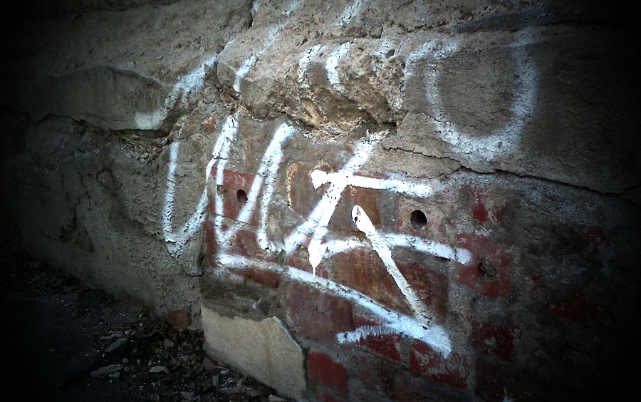 That was just a small sample of what I see, walking around down here. In this past week, I’ve become more aware of it, and now I travel on foot and find myself staring all around me, on some Great Big Search for Everything. It’s nice. It makes the world a little more interesting. Some people don’t think so, though, and when they spot markings on their terrain, whether it is graffiti OR art, they wash it off, paint over it, or otherwise blot it out.