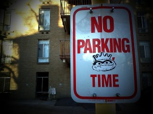 For the most part, the first images to be eradicated are the lame pee-marking tags. I’m fairly certain, by the basic shape of the cover-up above that this is what that was. Rock on. Inevitably, though, the fun arty stuff gets Gray Ghosted too. Some spots sooner than others, certainly, but all of it very nearly always goes away. In my alley, on a brick-red wall right behind our building, there was once a very wise, stencil-spray-painted yellow owl. I never got a shot of him, but he was a grin-inducer every time I left the apartment. He was there for a VERY long time, in the grand scheme of things…I would estimate about 3 months. Then, one morning, he was gone. Art, quite often, is very transitory indeed.