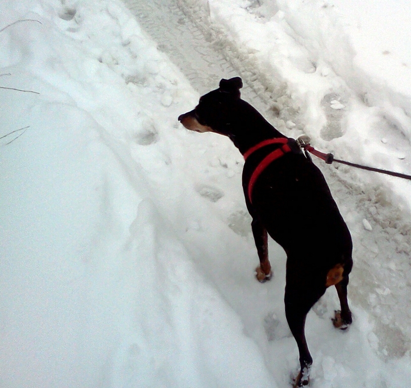 Per morning routine, I walked the dog before I left.  He was displeased with the outdoor situation.  I don’t blame him – some of this stuff was almost taller than he is.  One of my building-mates, who I ran into walking her dog at the same time, referred to it as “frozen nipple” syndrome.  So true, poor pups.