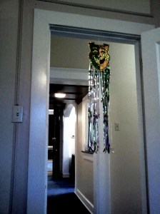 There is a little note written on both sides. I told her I would take it home, pack it, and add it to our future Mardi Gras Decor pile.