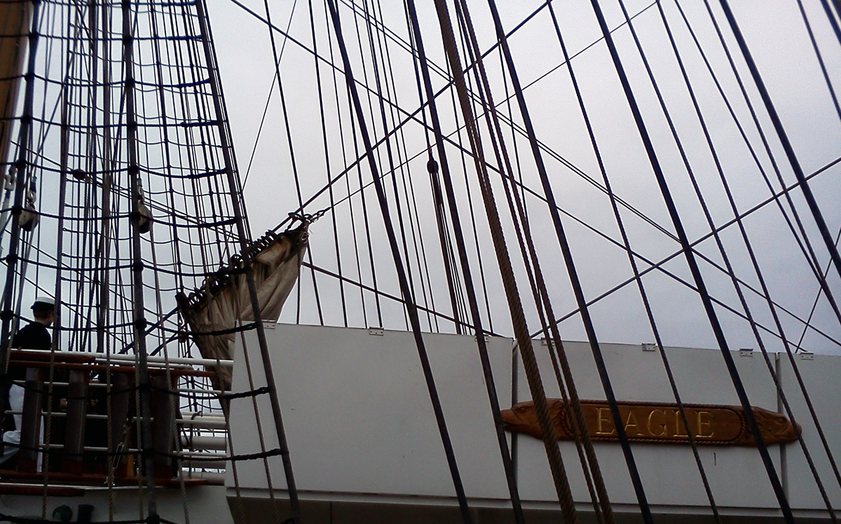 What an experience for you guys to do this, and get a first-hand feel for just how magnificent all of those vessels are. Wish I could’ve been there. Obviously, from you pics, you noticed how precisely squared all those yards were. That’s impressive seamanship and takes awhile to perfect. To me, each ship has a life all it’s own, that you can feel the second you go onboard. There’s a surge there, a straining to be well away, no matter whether it’s the Eagle or a modern aircraft carrier. I’ve always missed that, being as far inland as I am. Time may rectify that once again, but even a rowboat will do me. Excellent coverage. Should be in the Picayune.