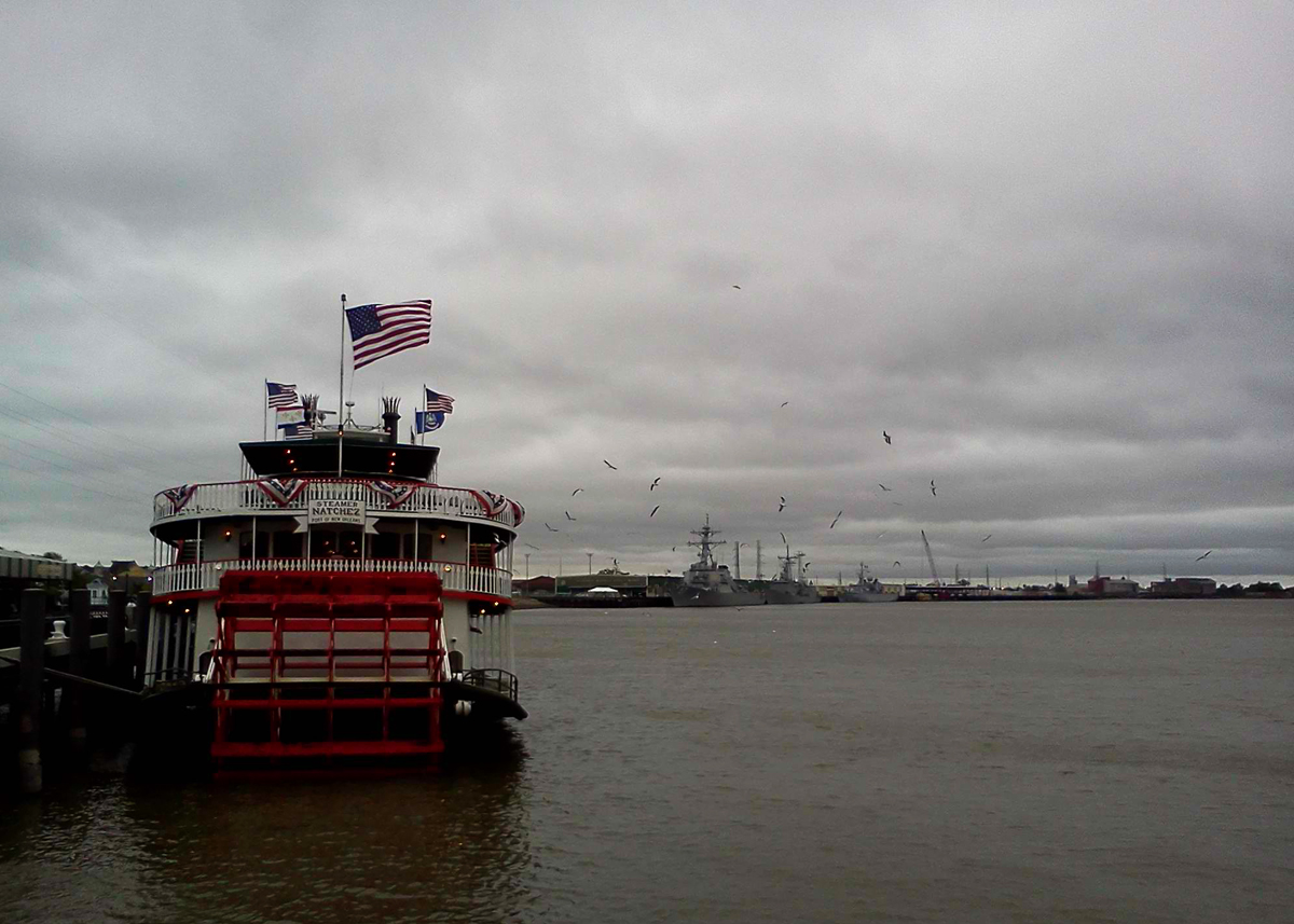 I stood at the Bienville Street Wharf under a heavy post-storm sky. As the gulls swooped and swarmed over the river to claim as their own that which the rains had kicked up, and the wind careened through my hair, I closed my eyes and just…listened.