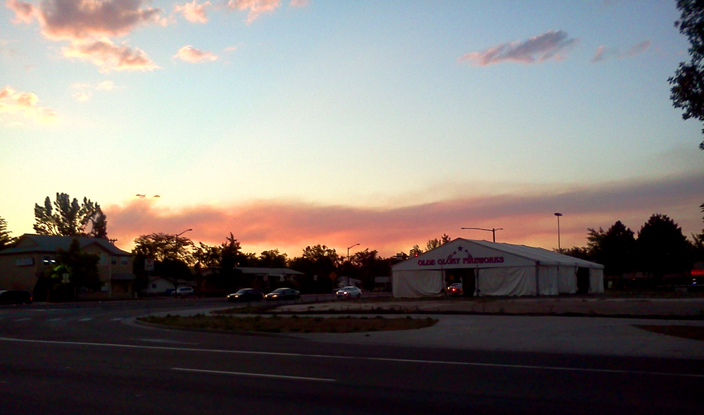 Idiocy in Action. Smoke Plume behind FIREWORK TENT.