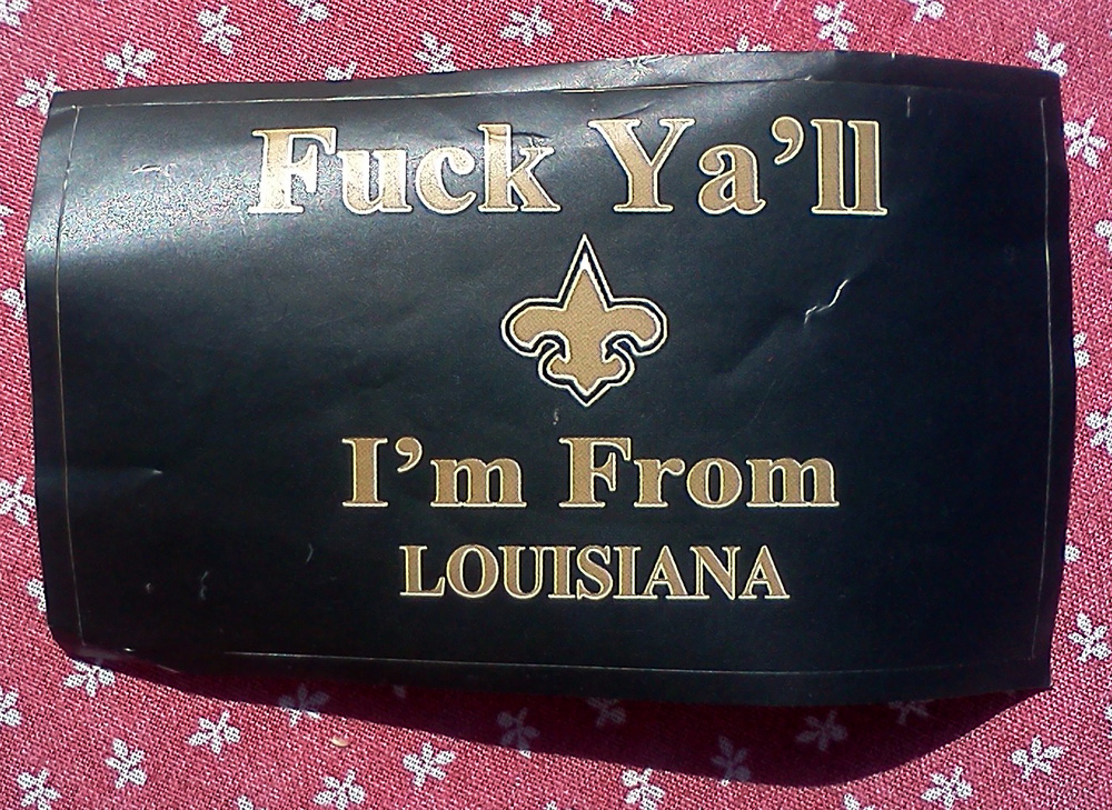 That being said, I will end with this image, of a sticker I acquired in 2010, when J and I spent some time in New Orleans with some close members of our tribe. I cannot for the life of me recall how it got into my hands…I think one of my friends gained it as a freebie during a purchase, and then passed it on to me? At any rate, I’ve been carrying it around ever since, as can be seen by its rather rumpled appearance. This has since become a catchphrase between J and I (especially, for some reason, when battling vile Loveland drivers in traffic). Anyway, why not? We live in the fat red leg! And will, sooner rather than later, be back in the actual boot anyway: