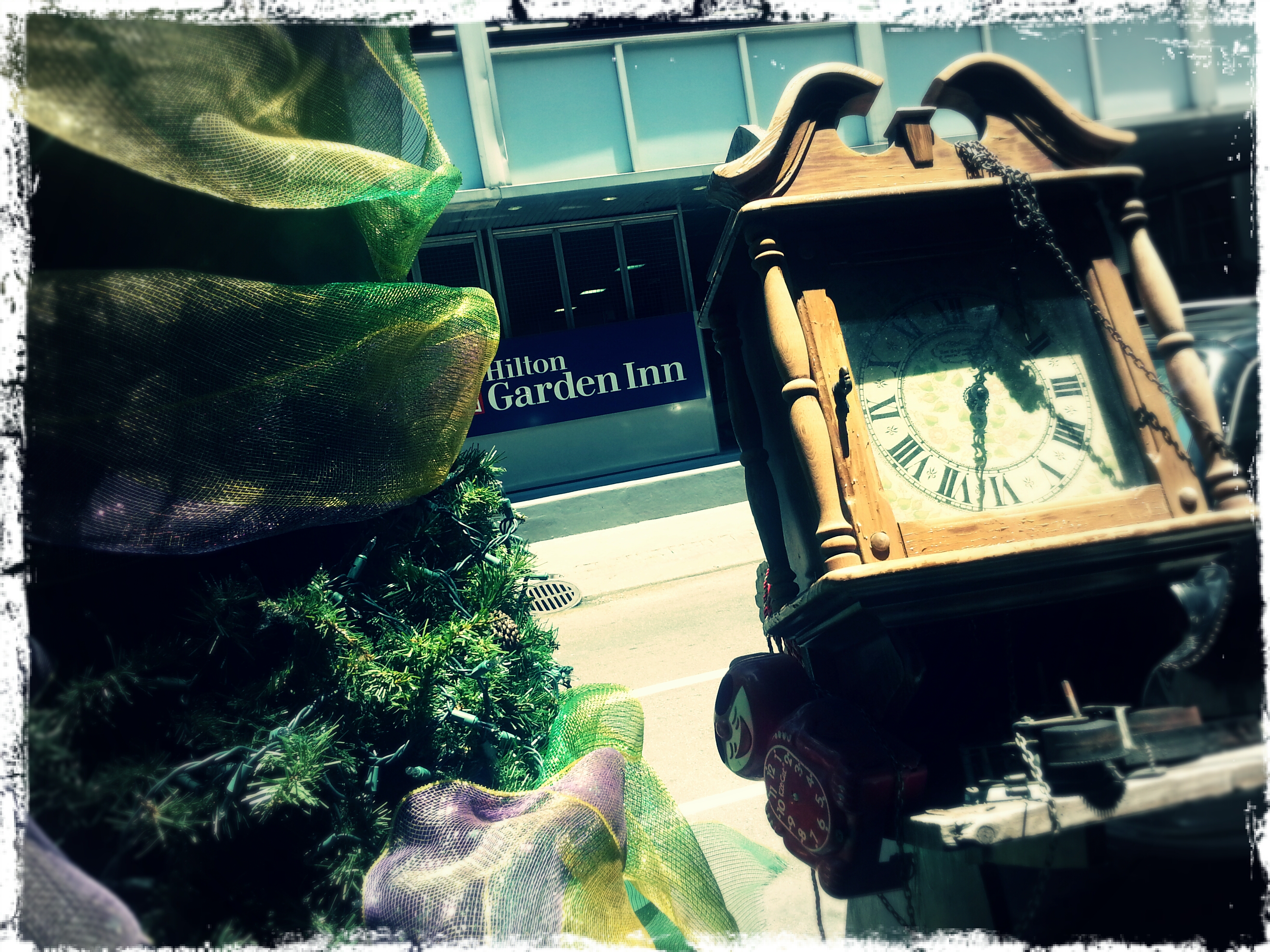 Like the clock shop on Gravier St. I love this particular block of Gravier, it’s so…Victoriany. I didn’t get a street shot that day because the crowds were too dense, but I caught the clock shop display.