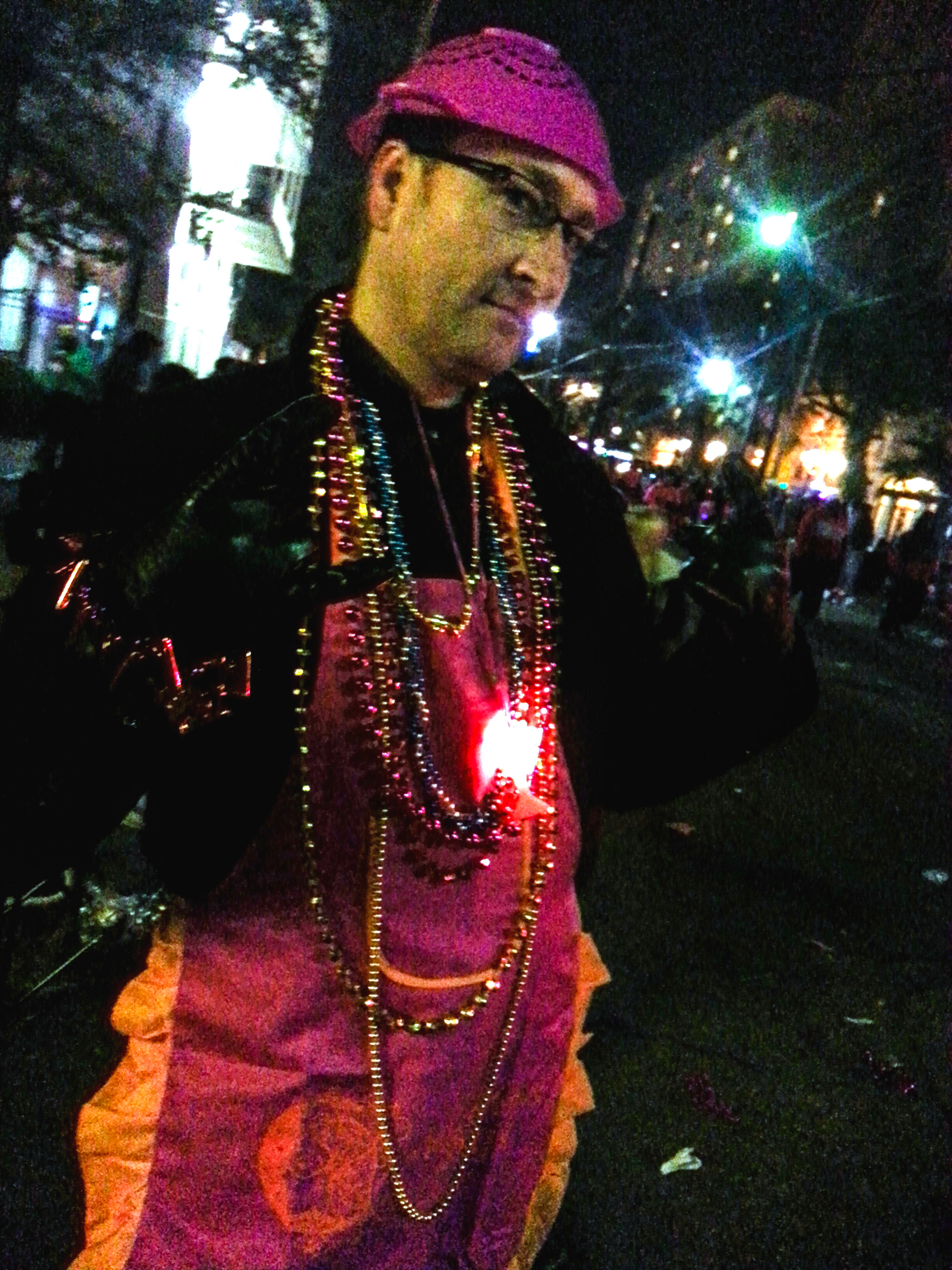 Last year, since we didn’t actually live in town, we caught the parades we did see from Canal St. Since then, I’ve come to appreciate the nice little nest of the Lower Garden District. More families and native folk, better groove. The closer to downtown and the French Quarter you get, the wonkier people become, and after spending the season up Here, being down There got very irritating, very quickly. But, Endymion, which we’d never seen, is a Mid City parade. So after Iris and Tucks, we walked down to Lee Circle, the closest part of their route to us, to see it. Absolutely gorgeous parade. And now I can say we’ve seen a parade from Lee Circle. And I can also say we will never ever EVER do it again! Met some cool folks while we were down there, but had to deal with some obnoxious drunk college kids too. On top of that, it’s like being smooshed into the tightest sardine can you ever did see. It’s just not worth the hassle. Next year, I think we’ll go to Mid City, have a different sort of day.