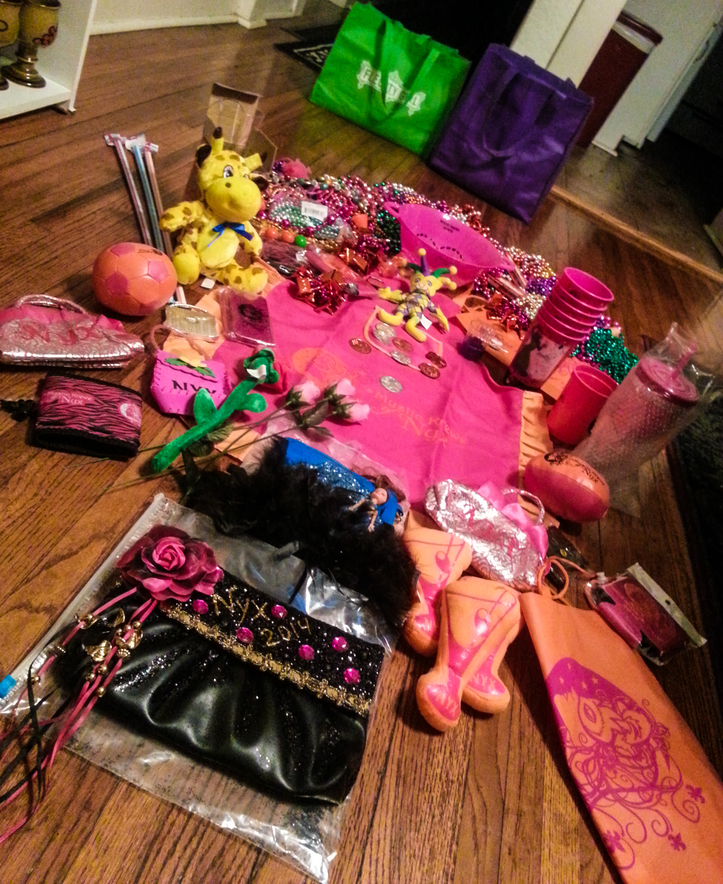 It’s funny how the parades start to run together after a while. J and I were sorting the massive hoard of catches the other day and were amazed that we could place what we got from where. We kept things pretty organized, though, so it wasn’t too hard.
