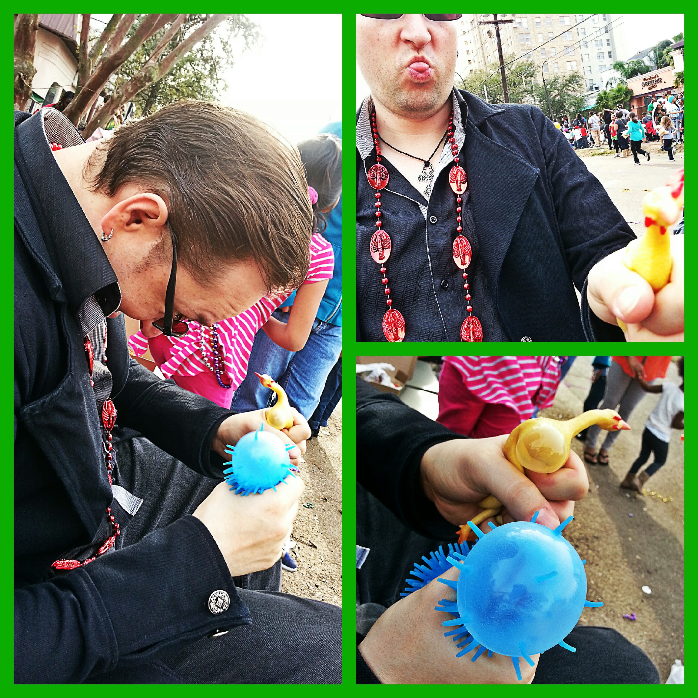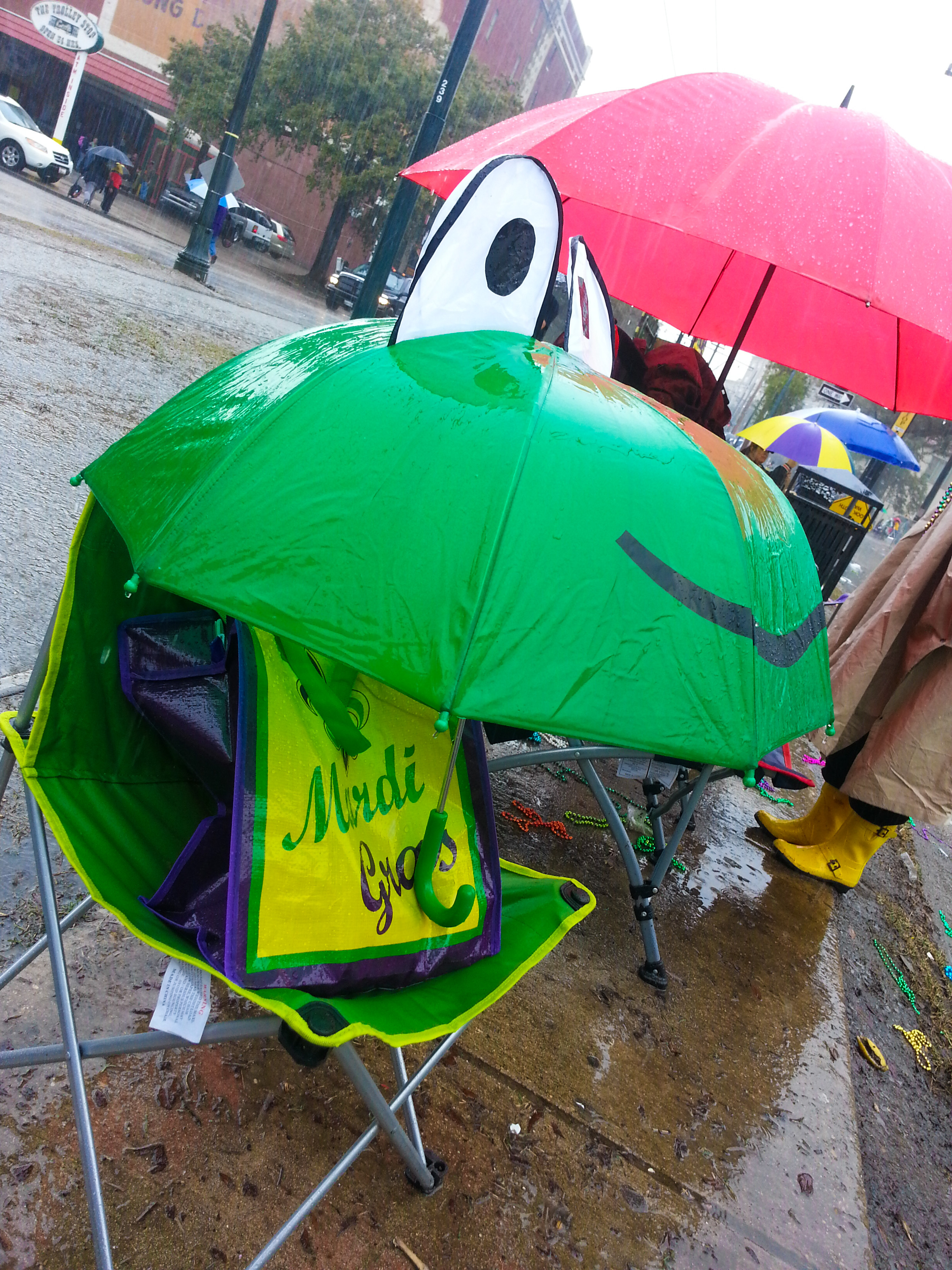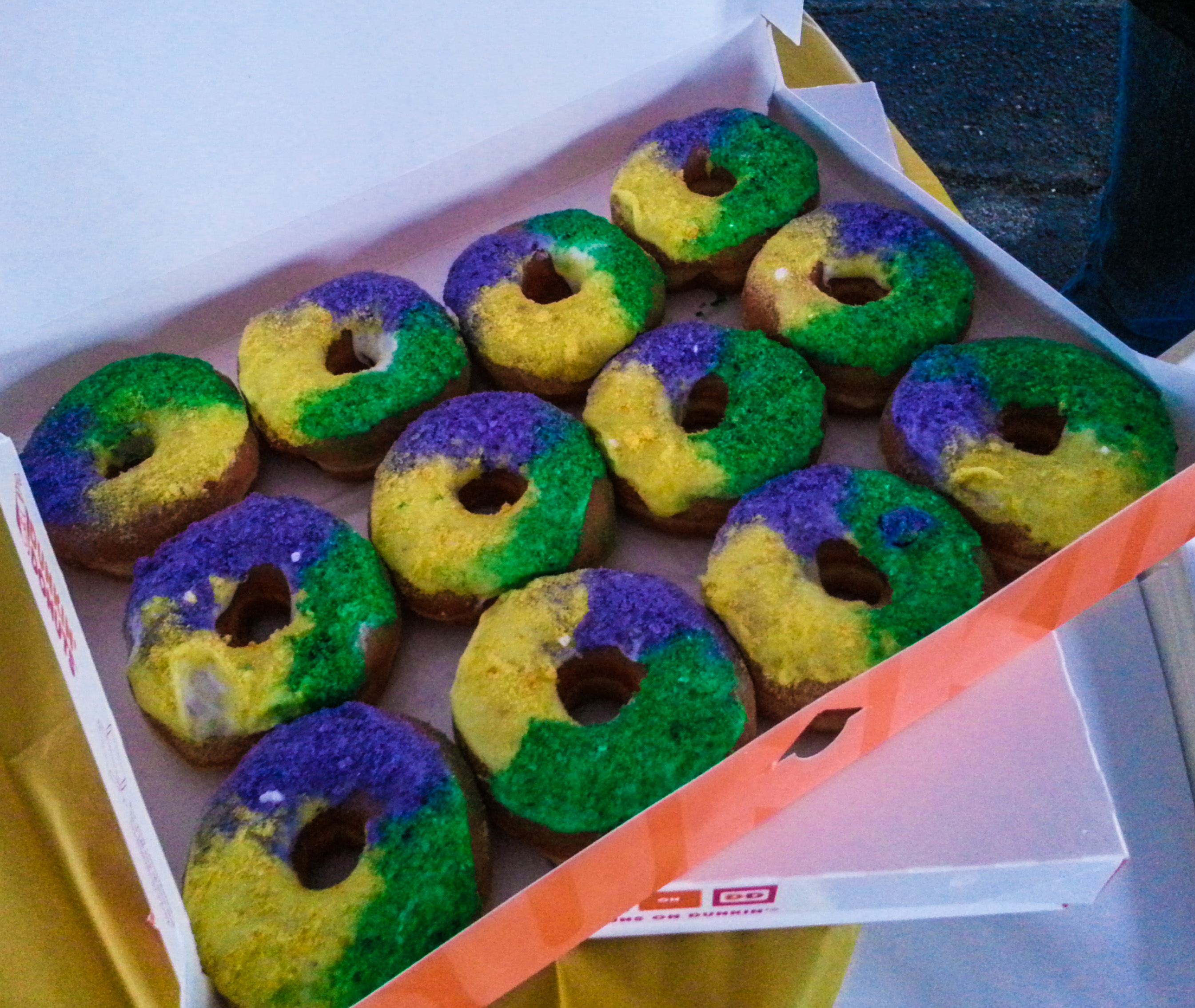 We almost made it. By d’Etat Friday, we had to take the night off. Bacchus Sunday, we took time off from the day parades to save our energy for that evening, and decided not to stay for Bacchus in its entirety because we still had Lundi and Mardi Gras to go. But, we almost did it! Next year, we can be more picky I think. At any rate, J and I are recovering from the Crud, aka Mardi Gras flu. Not the kind of Mardi Gras flu you incur all in one night, rendering yourself incapable of seeing straight the next day, but actual germy snot-filled crud. Okay, not actually flu either. But you get the picture. All those cold and rainy parades! They soak right into ya. But, we’re feeling better, slowly but surely, and life is good.