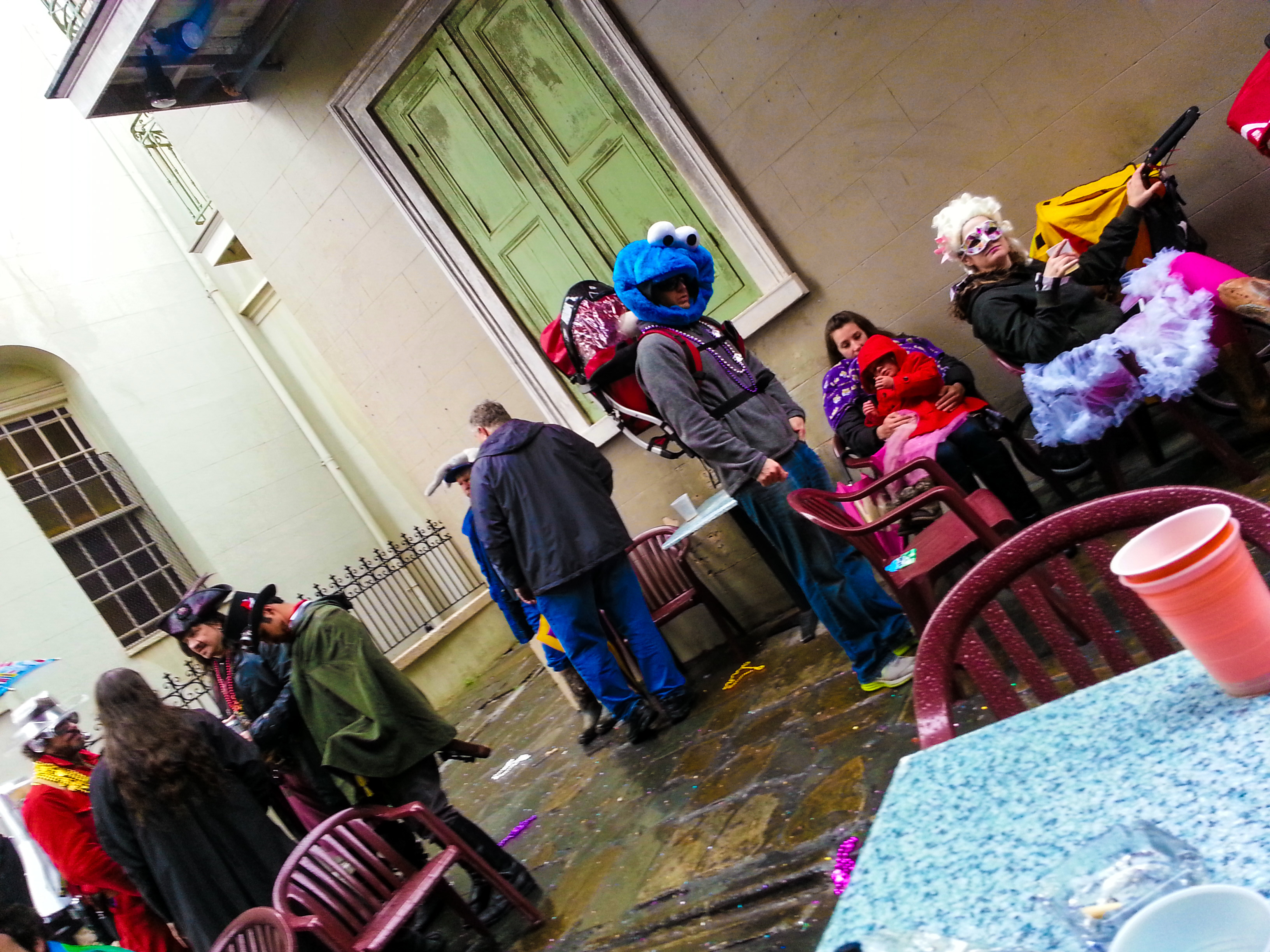 …which meant we could salvage some NOLA Mardi Gras! I needed just a little Weird in my Mardi Gras Day. So J and I and H and A went to the Quarter for a little while. The weather put a damper on the activity down there, too, but it was just nice to be there, we got to see some folks we know, and I still got some of my Weird.
