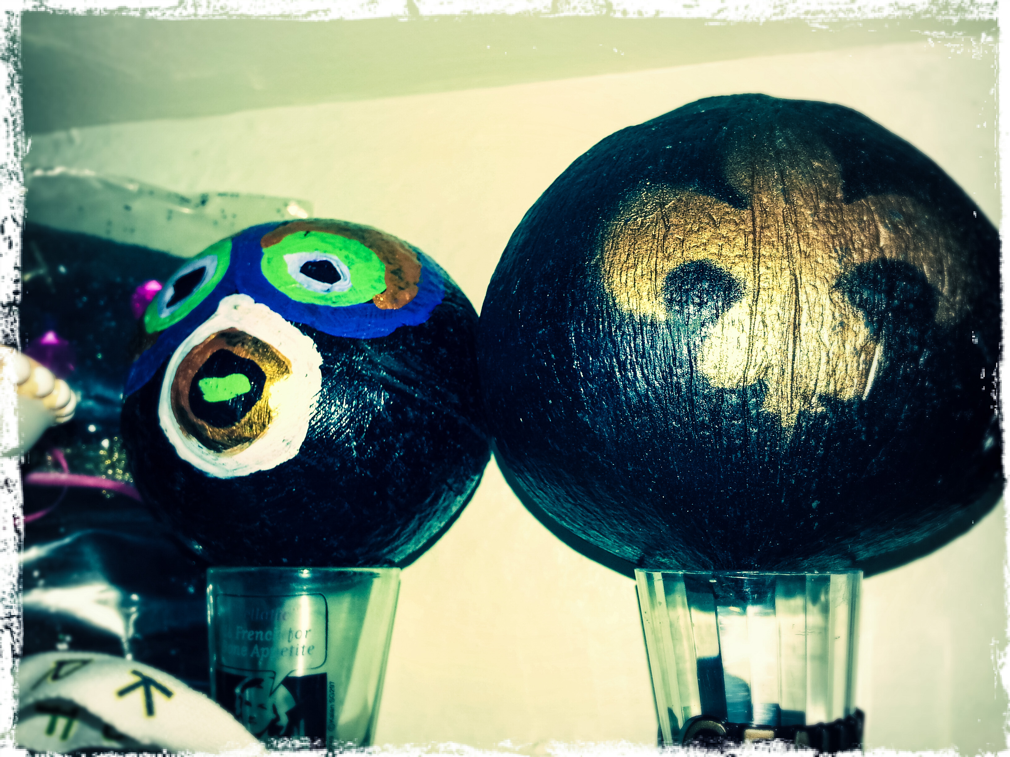 Ash Wednesday morning, as I was pitifully ambling to my streetcar stop to go to work, I happened to glance down into the street at the corner of St. Andrew and Prytania because there was this pile of parade catches spread out in the gutter. Frisbees and footballs and the like. Whatever. As I got closer, I realized there were two 2014 Zulu coconuts laying there with the rest of the rejected. Forgotten? Dropped? Left behind, for sure. I promptly picked them up, walked back home, and put them inside.