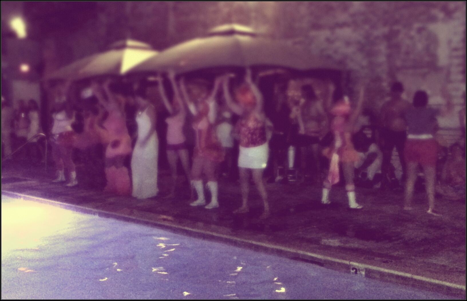 Then, I spotted the ladies who were dancing that night line up in preparation to take the stage (or, in this case, space by the pool), and that was our cue to Go See!