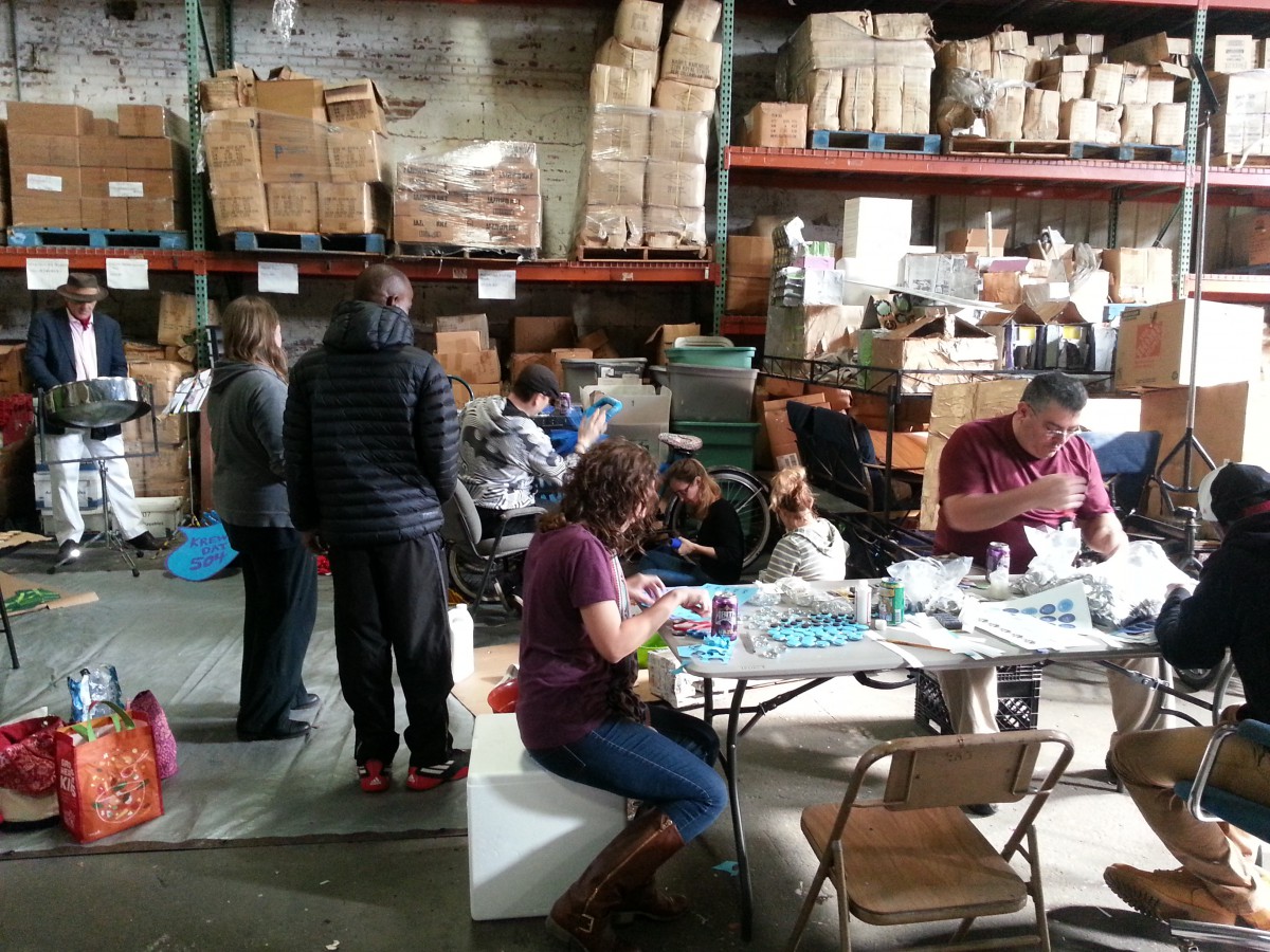 After the million-hour duration of fold time, we painted and painted and PAINTED! Then our little blooms were dipped in scented wax, stems were added, and the final touch, our Krewe stickers, were leafily added to the stems.