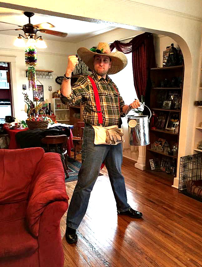 What? And lo! One of my dearest friends (The Madam) emerged forth from the guest room – she had journeyed all the way to New Orleans from Colorado, because she didn’t want to miss us marching in our very first Mardi Gras parade. Best. Present. EVER!