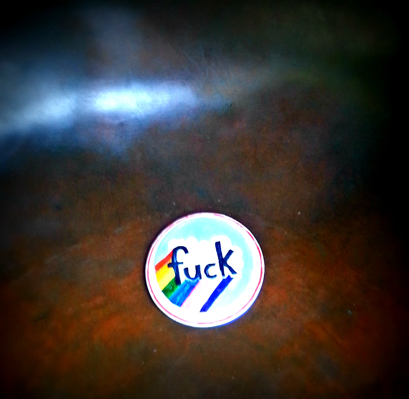 From the photo, I knew immediately where it was based on the image’s background and went straight to it. And, Lo, there it was, a small piece done by Love Paul Rizzo, in all its fluffy profane glory.